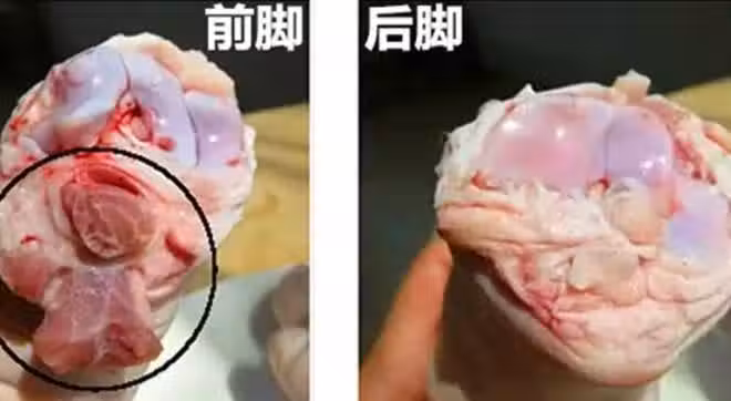 所以平時在買豬蹄的時候一定要注意,有豬蹄筋的,就是前豬蹄,可以買,沒有豬蹄筋的,要麼就是後豬蹄,要麼就是被抽走豬蹄筋的前豬蹄,儘量不要買。