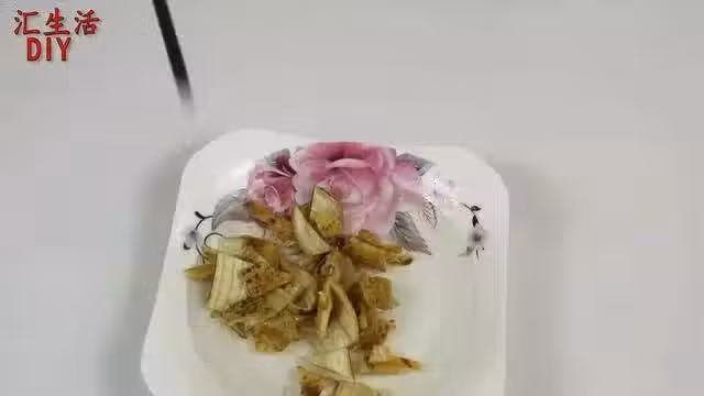 然後我們在盤子裡加入一點兒,我們家中常用的白糖,這時加入一勺白糖,