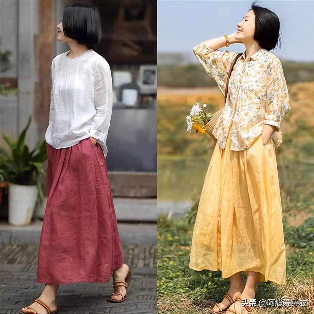 其次,推薦大家穿米色的衣服,米色是一種介於白色和黃色之間的色彩,這種色系非常的柔和,但它和白色又有一些小小的區別。根據下面對比,你也能發現左邊的純白色看上去還是有些許單調的,而右邊這種米色的單品更加柔和溫和,沒有攻擊性。