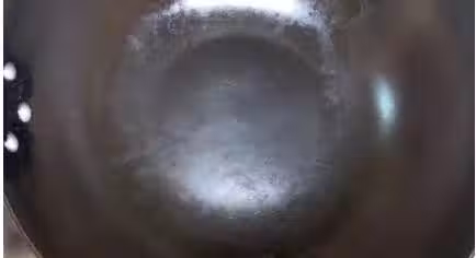 倒入涼油,燒到三四分熟的時候將魚放進去,煎上七八秒之後轉動鐵鍋,讓魚的頭部和尾部都能夠受熱均勻。火力一直保持中小火即可,不要隨意調動,避免影響煎魚。
