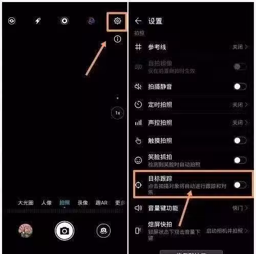 啟動方法:相機——右上角【設置】——【目標追蹤】。