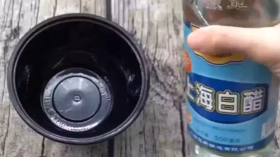 第一步:首先我們準備一個容器,在裡面倒入白醋,白醋能夠殺菌消毒,去除異味和黃漬,