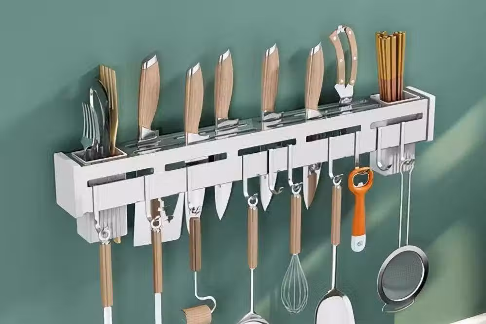 有很多姐妹用磁吸式的刀架,顏值很高,不過挺危險的,剛開始很好用,時間長了磁性會慢慢消失,菜刀什麼時候掉下來完全是未知數。而且只對鐵質的菜刀有用,陶瓷刀掛不上去。