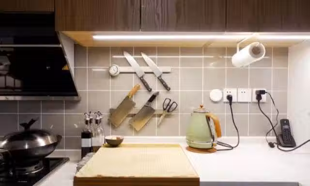 如果能把櫥櫃完全利用起來,那廚房真的會干凈很多,櫥櫃除了可以用來收納一些物品,櫥櫃的門也不能浪費了。