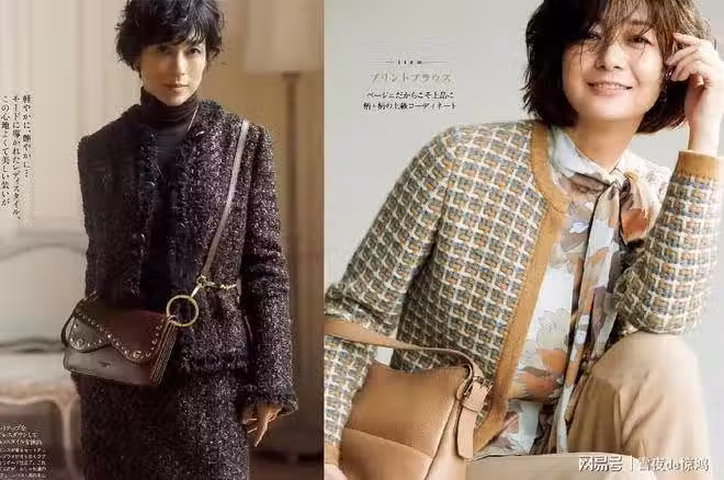 簡約、精美的小香風外套也是40歲的我們值得投資的單品,採用同色系的搭配方式,會讓我們顯得更加高級有范。像左圖博主穿搭的這款小香風套裝就格外精緻、貴氣,裡面選擇搭配黑色高領針織衫,有一種被包裹著的安全感。簡單背一個棕色包包,有些小小的帥氣,美的很溫柔隨性。
