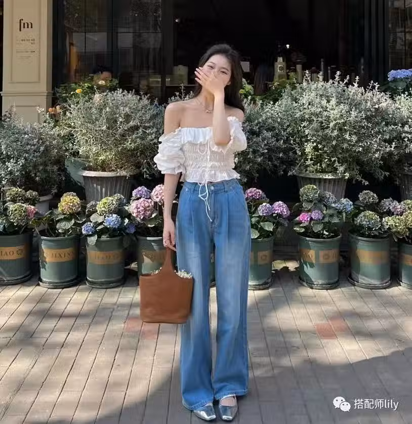 簡約卻不失高級感的一套,整體也帶著幾分休閒,五一出遊的時候,這麼穿也是很不錯的,黑色小香風短袖,這麼一件上衣,穿起來可顯瘦了,還能很好優化身材的比例,下身依舊配的是牛仔褲,有些拖地的長度,真的是很能拉長腿部線條,上短+下長的組合,輕鬆打造出九頭身段,顯高挑效果超贊。