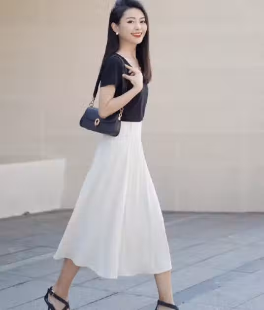 而半身裙的搭配系列,首先的版型優勢之一就是一定要將高腰的設計列為一定的必選項,尤其是個子比較小一些,或者是事情的比例,並沒有什麼優勢的女性高腰的設計搭配,可以極好的強調和優化整體的比例襯托感。