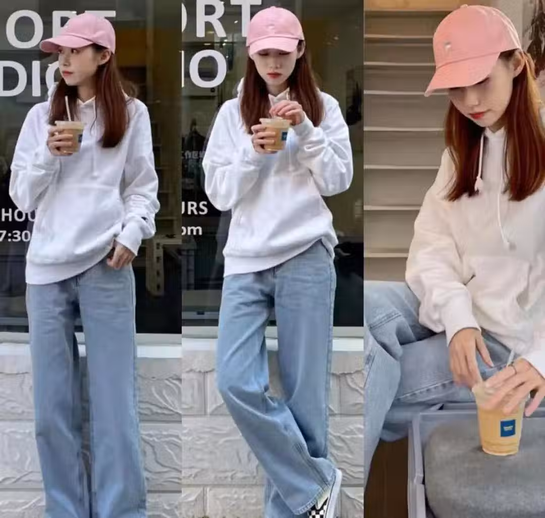 搭配淺色直筒牛仔褲,直筒版型很能修飾腿部線條,穿上身很顯腿長。一身「休閒運動風」穿搭簡約又乾淨,很是舒適耐看!