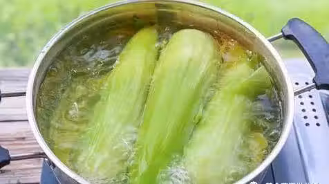 二、煮玉米:將玉米最外層老皮剝去保留裡面兩到三層玉米皮,把玉米放進煮鍋倒入水,放入適量食用小蘇打,煮玉米時放小蘇打可以使玉米中的營養釋放,煮出的玉米既鮮嫩又軟糯,玉米的營養更容易被身體吸收。