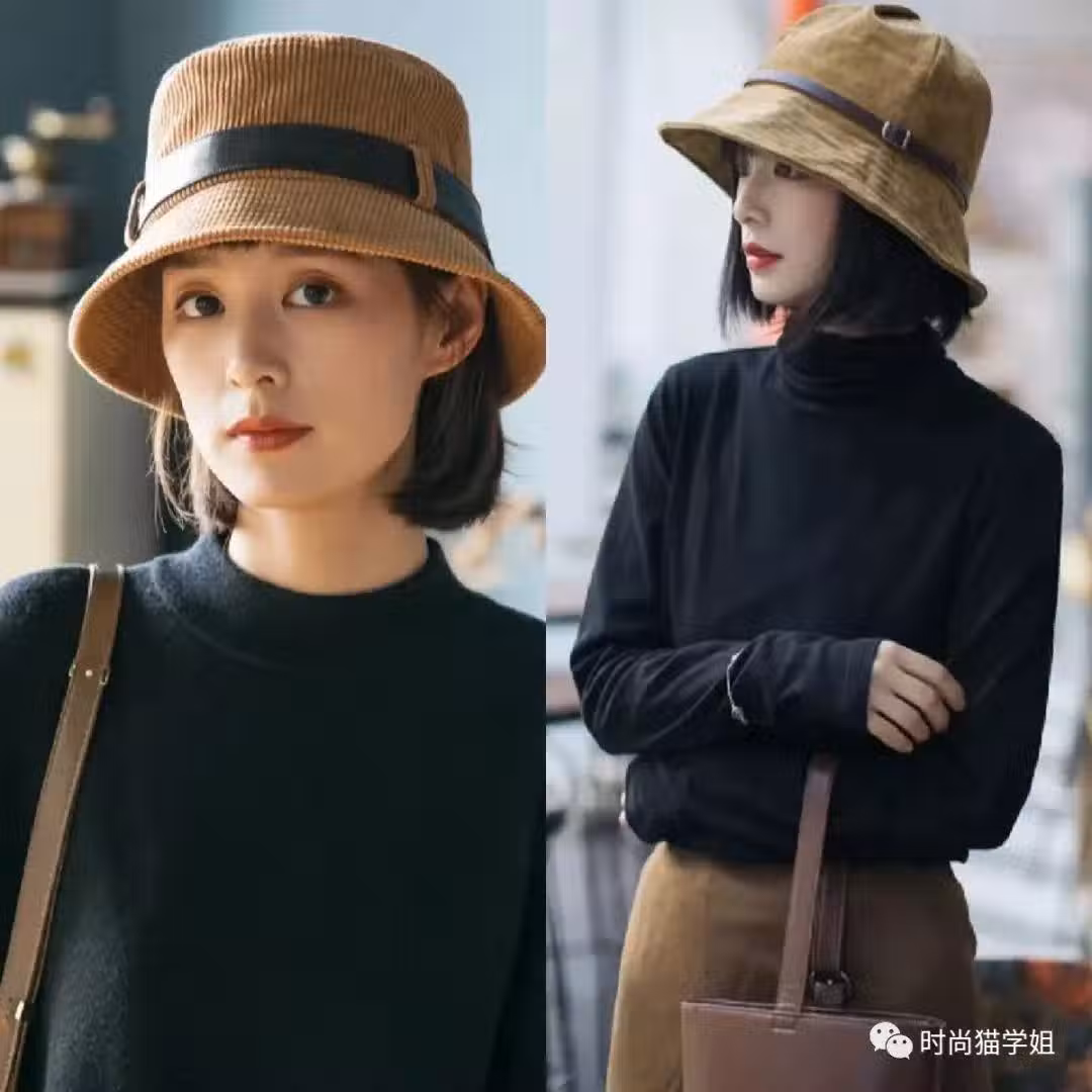 此外,在搭配時,如果服飾本身就已經層次感十足,有亮色/花色/多種配飾(絲巾、耳飾、項鍊、墨鏡、戒指)等元素的加持,那建議選擇純色系基礎款的帽子進行搭配,會讓穿搭看上去更高級。相反,如果自身搭配非常簡約,就可以選擇帶有一定設計感的服裝,來豐富造型的配色和時尚度!