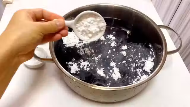 這時候我們就可以分別將糯米粉(澱粉)以及食用鹽倒進水中,然後用雙手將其攪拌均勻。