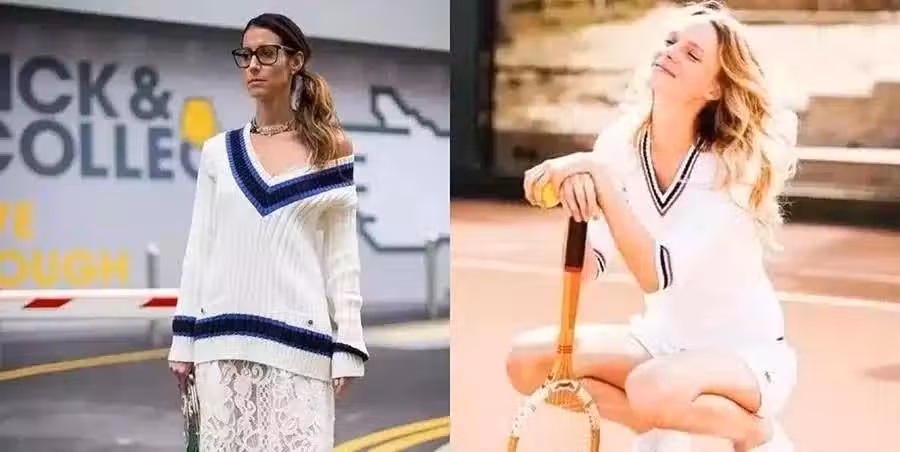 或許你對V領look了解不多。最初的V領出現在網球衫上,專為打網球而設計。運動型V領採用不同顏色的線條勾勒輪廓。那種感覺很明顯,後來V領就出現在了校服上。