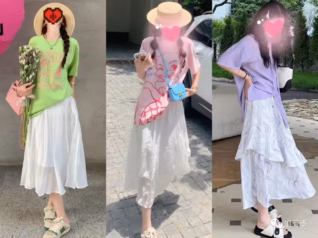 T恤+半裙=夏天的王炸組合,微胖女生換著穿,時髦一整個夏天