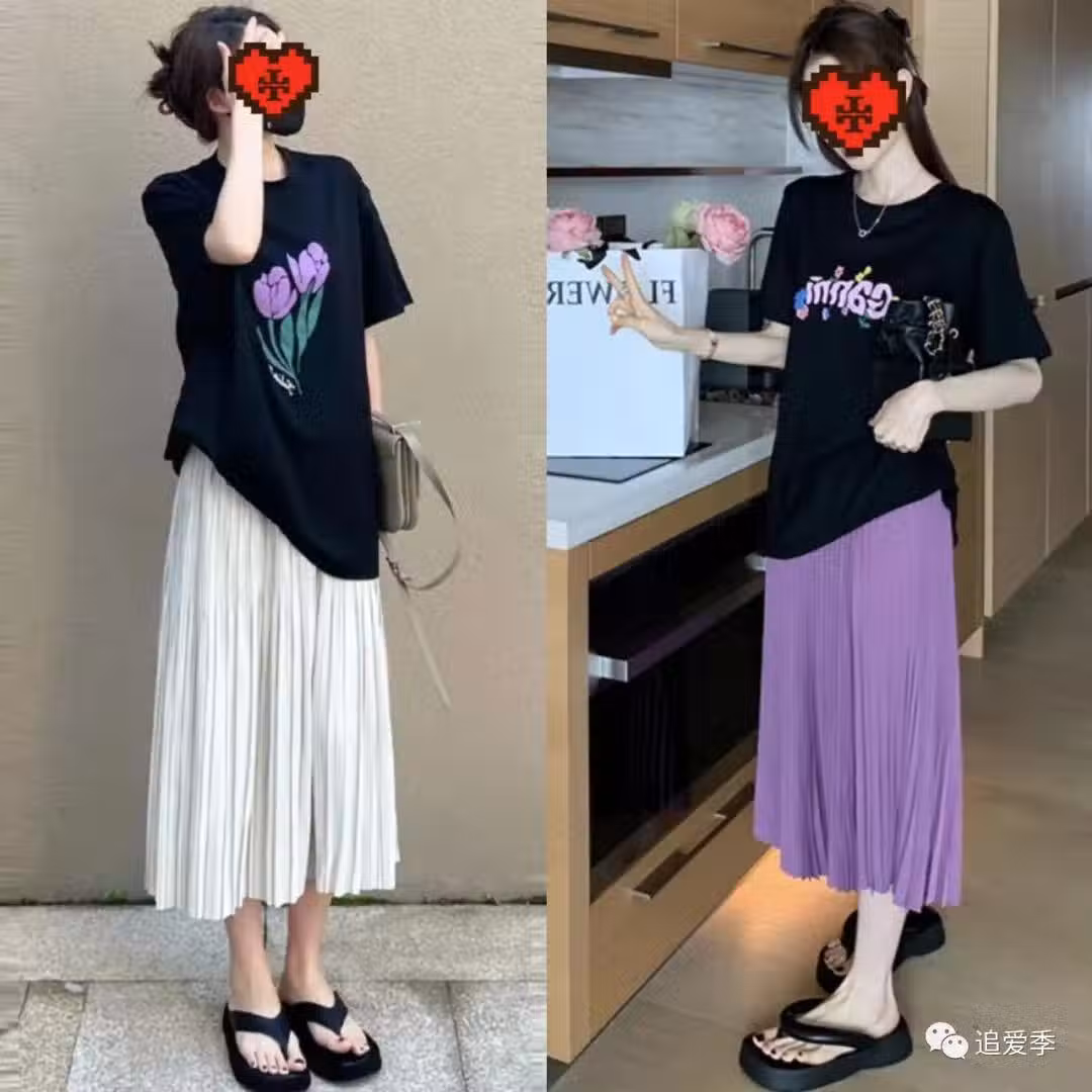 T恤+半裙=夏天的王炸組合,微胖女生換著穿,時髦一整個夏天