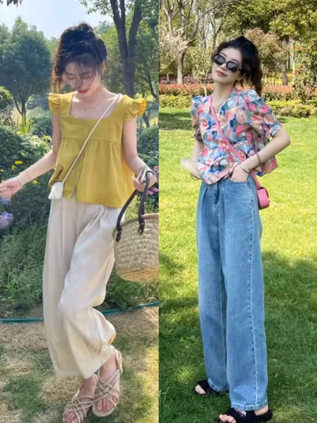 九分褲和拖地長褲是目前來說上身效果最好的,因為這兩類長度的長褲既能防曬又不用擔心不合時宜,走到哪都好看。