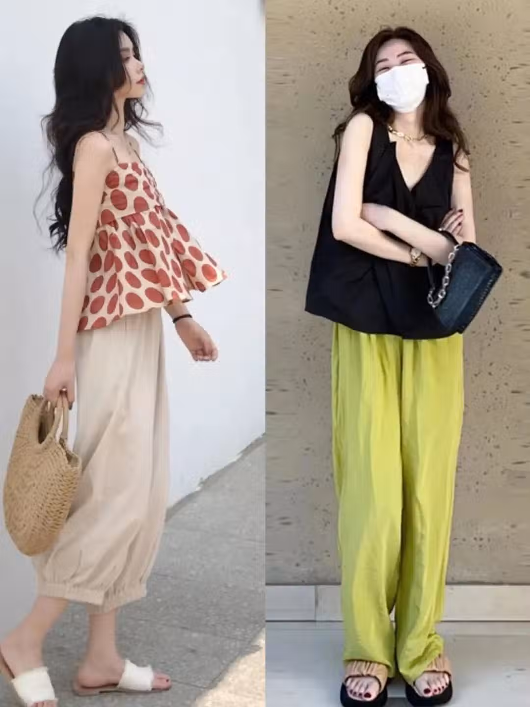 其實從我和朋友的上身試穿效果來說,夏天穿半裙甚至會比穿長褲更勝一籌,它能取勝的點就在於單品上身女人味十足,即使你本身沒有女人味,在視覺上也會比博主身穿這類長褲女人的多。