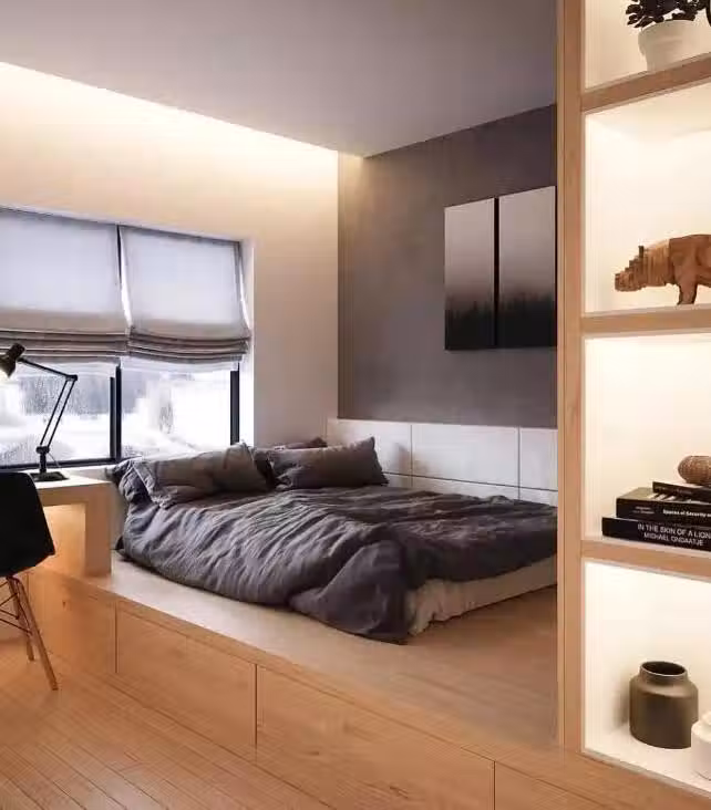 如果你家的空間很小的話,地台最好是靠近墻壁設計,這樣能夠增加收納的空間!