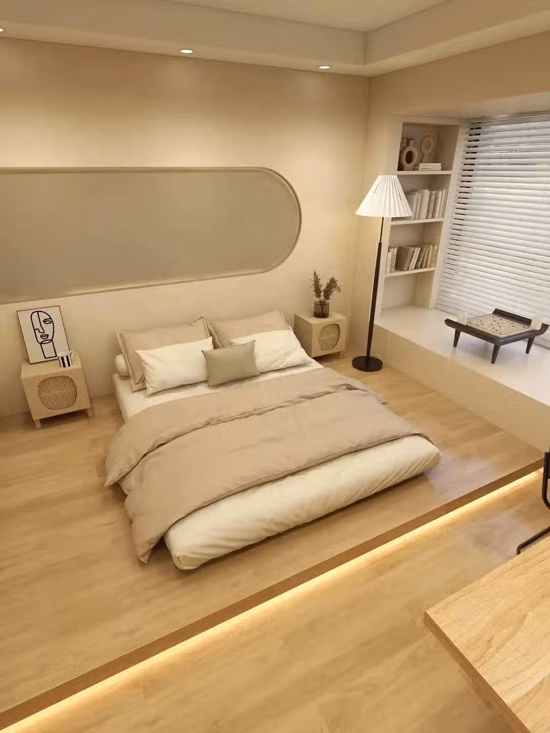 地台床和傳統的木床相對比更時尚,它的占地面積並不是很大,但用著確實很的方便,特別是喜歡居住在大床上的人,躺在上面會覺得非常的自由。