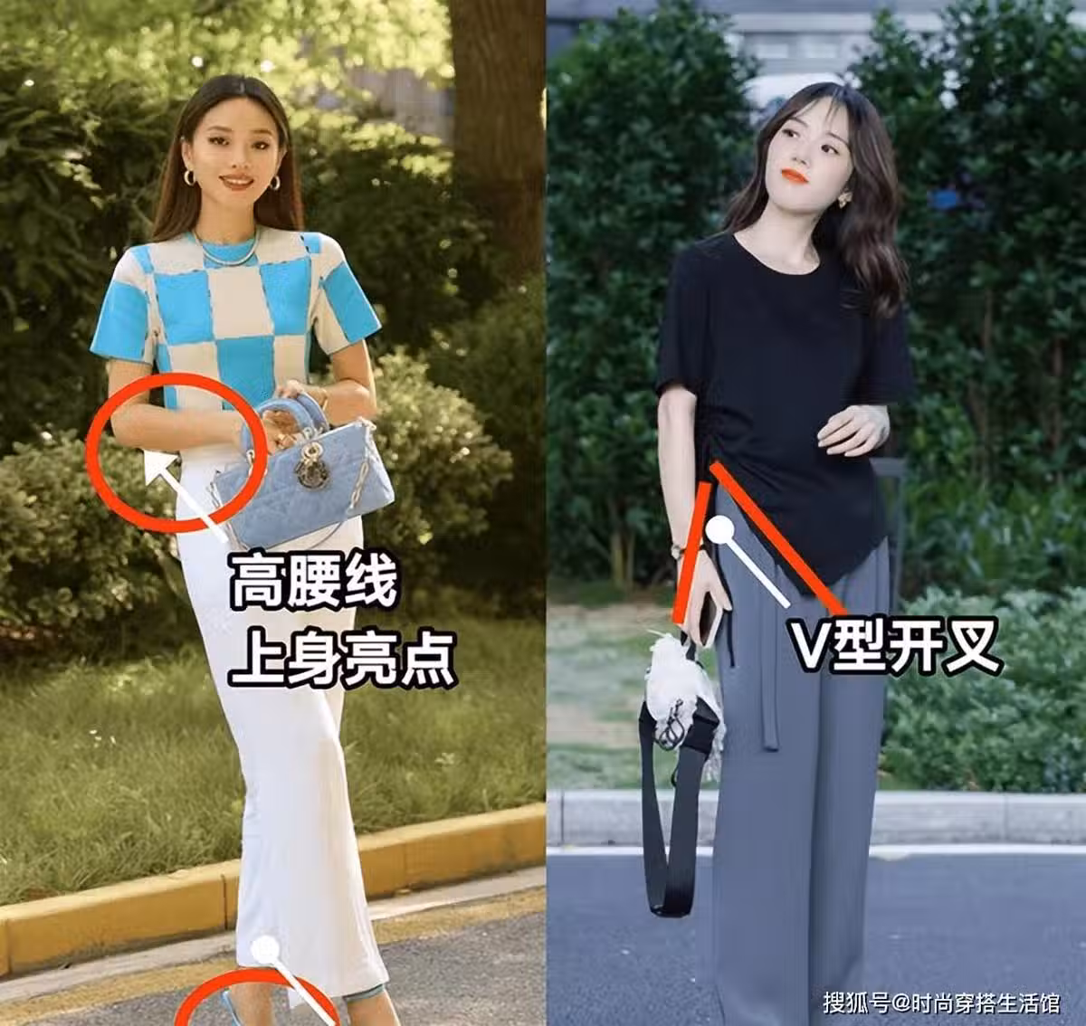 推薦大家可以參考上圖圖中腰部收褶處理的高腰九分褲,高腰版型輕鬆起到提升腰線的作用,最大程度的優化身材比例。
