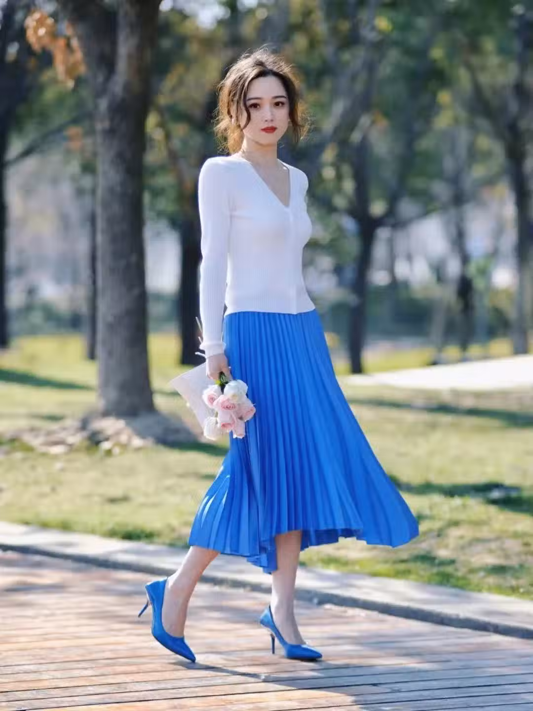 克萊因藍清冷又顯白,這樣的穿搭適合想要展現輕熟大氣感的女生,既適合日常穿搭,也適通勤場合。簡約氣質搭配,讓你時尚又不失優雅。