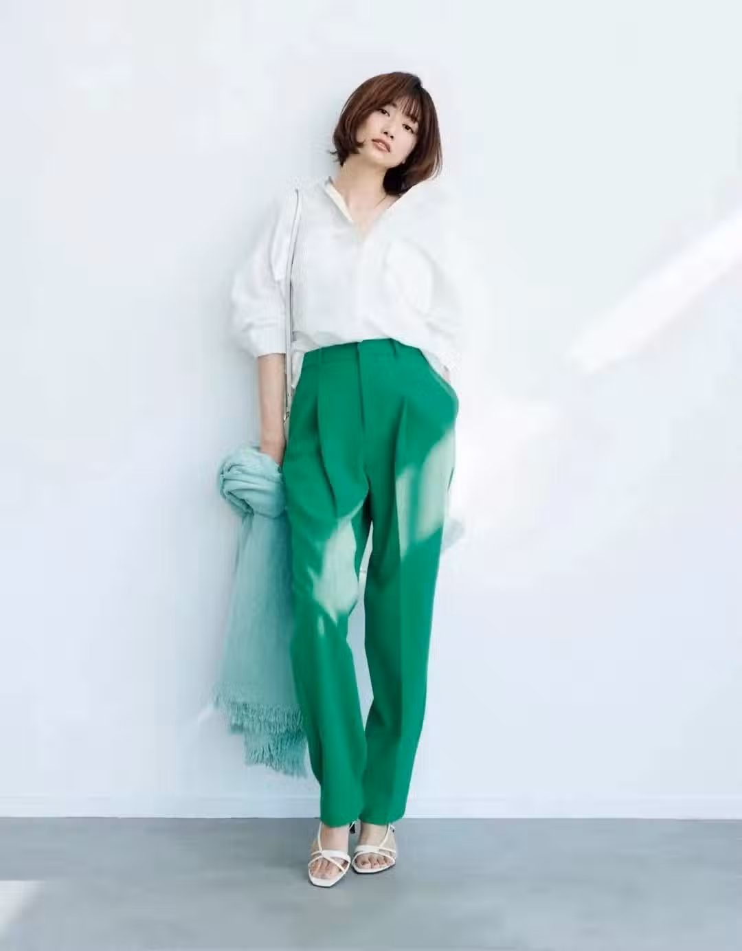 白色與淡黃色的搭配,清爽不厚重,淡黃色更是適合夏天。白色襯衫+寬鬆的淡黃色褲子,展現出法式優雅,穿出夏日慵懶風。