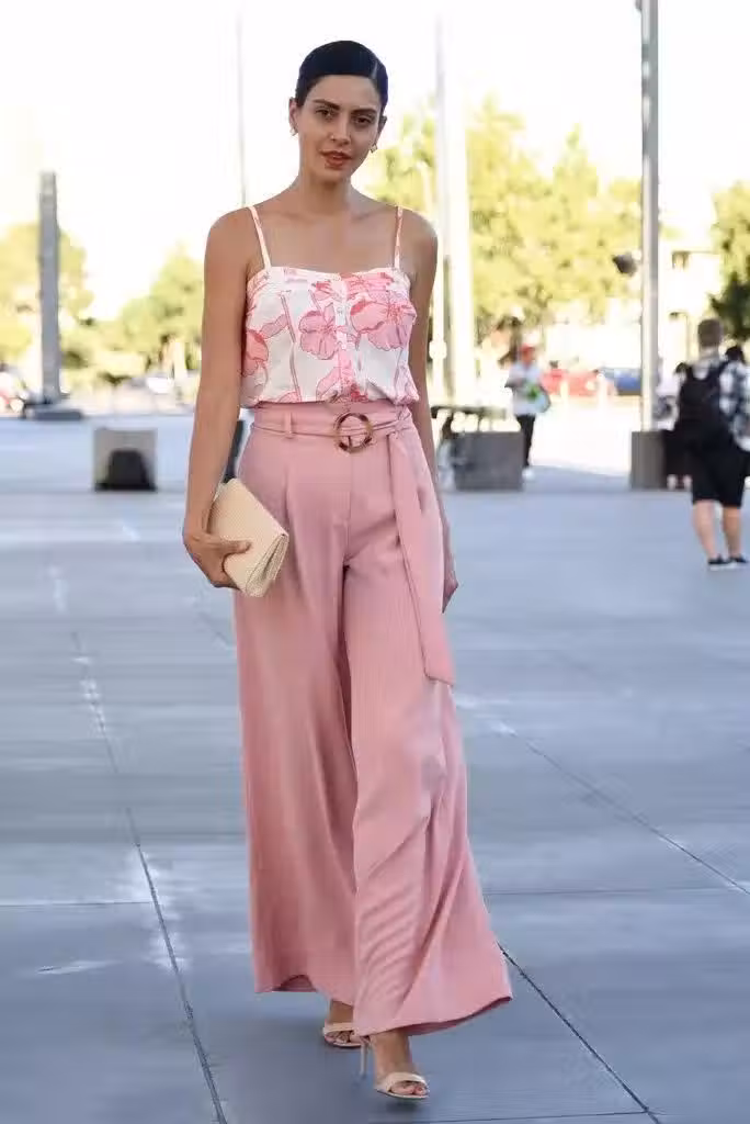 李沁這套look搭配的特別巧妙,粉色+黑色組合,沒了過分甜膩,甜中帶有一點酷感。