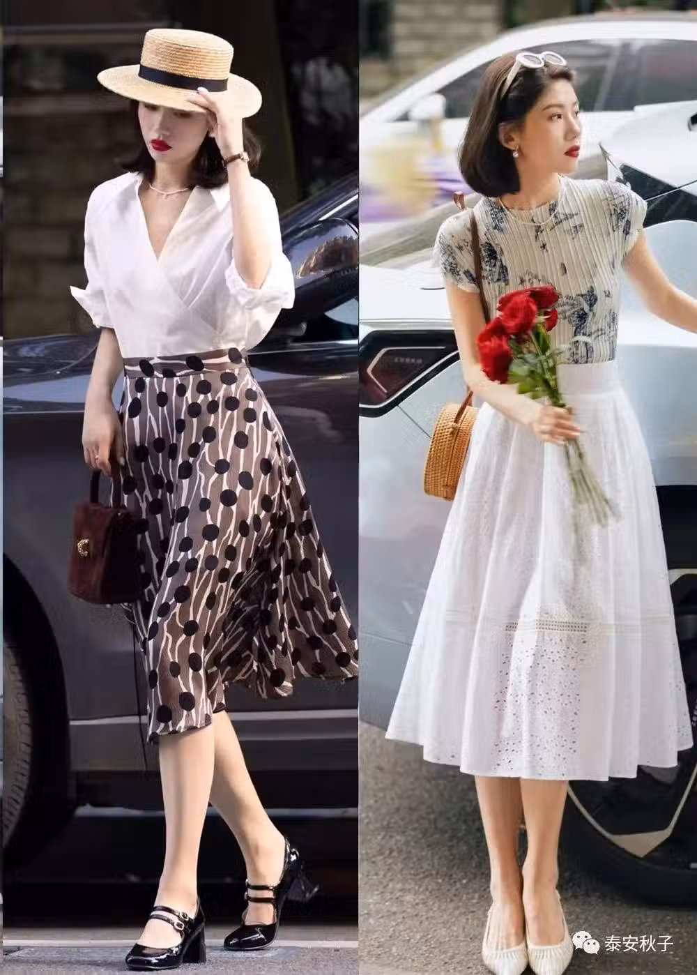 自帶細膩順滑的面料,加上對身材不過分挑剔的裙型,不管是搭配經典白襯衫,還是印花小衫,都能幫我們穿出精緻的浪漫感。