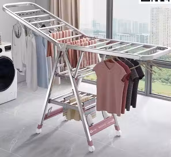 這款折疊落地晾衣架不僅可以用來收納平時換下來的衣服,更是能當成晾衣架使用,它的容量比較大,
