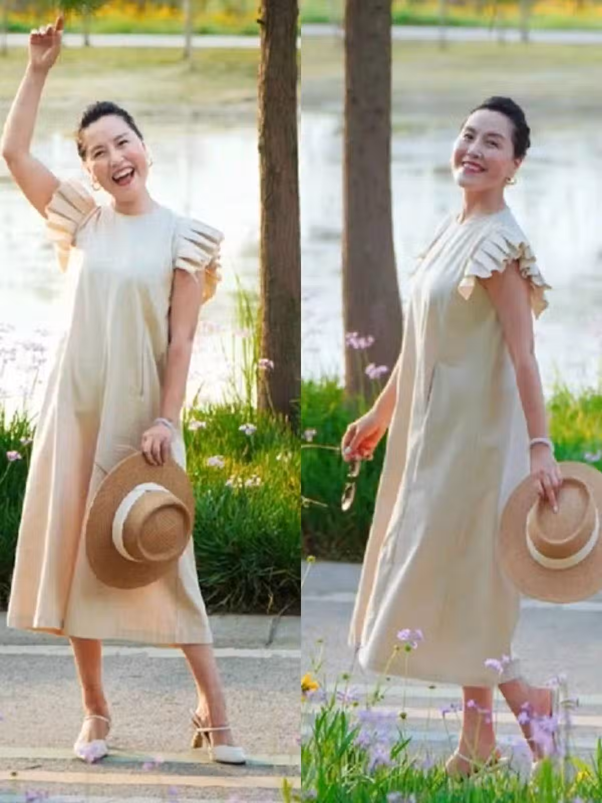 你可以搭配腰帶、帽子、項鏈、耳飾提升精緻感。媽媽輩如果胳膊存在一些贅肉,那麼要記得藉助露肩袖、小飛袖修飾胳膊線條。