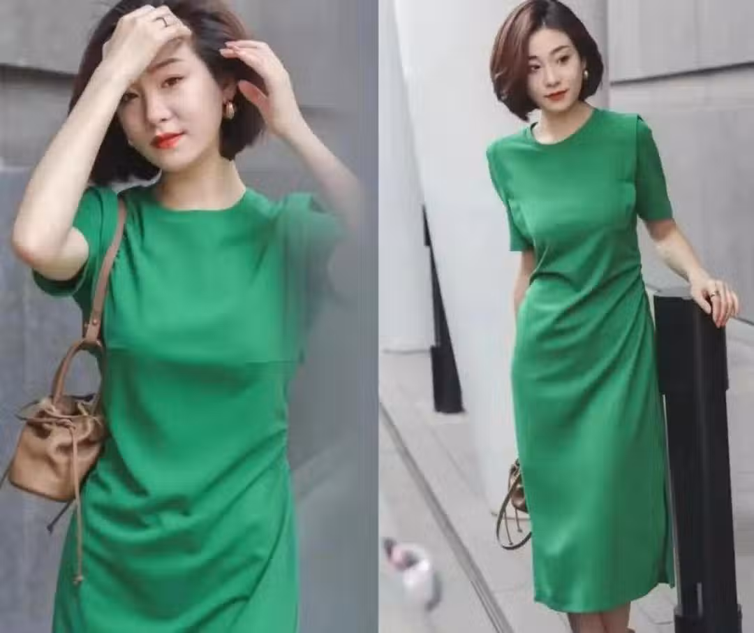 就像這件綠色的連衣裙,給人一種清爽的感覺。顏色帶來的時尚感很強,飽和度不高,對身材有變化的效果。