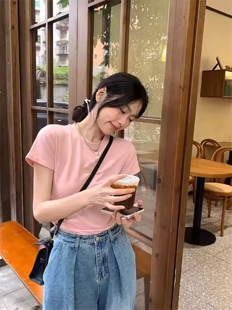 淺灰色是一種經典而又百搭的顏色,它既不會過於顯眼,又不會太過沉悶,是一種非常適合搭配的中性色。淺灰色T恤能為你的造型增添一份簡約而又時尚的氛圍。