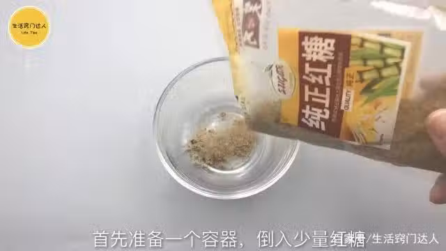 首先準備一個容器,倒入少量的紅糖,加入半碗啤酒,再放入少量小蘇打,用筷子攪拌均勻,充分溶解,準備保鮮膜把碗口封起來,插出一個小孔。