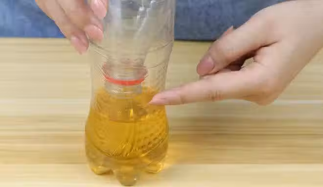 我們需要準備一個空的塑料瓶,剪開瓶口,反轉後[插·入]瓶身,形成一個漏斗狀的入口。