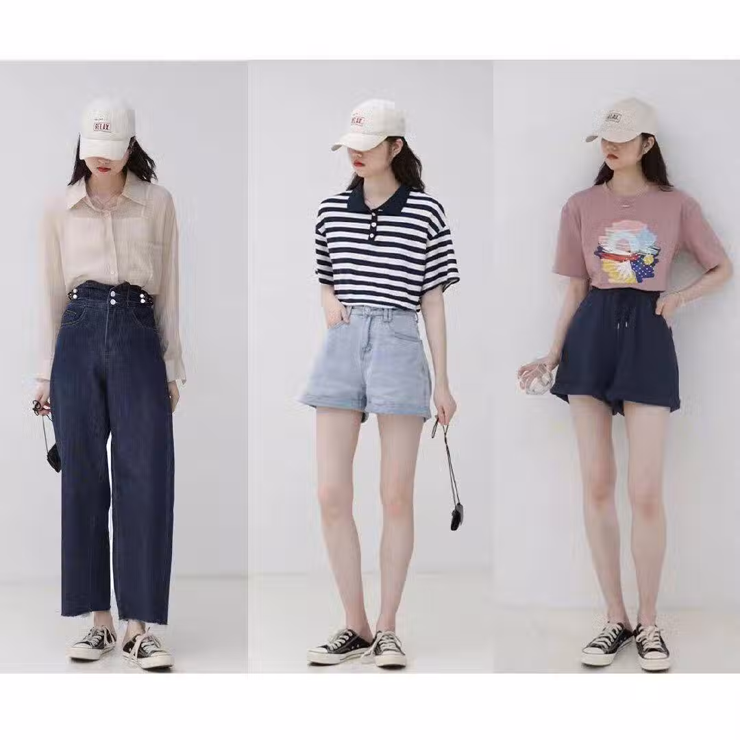 活力的搭配方法各式各樣,條紋上衣搭配休閑短褲,也能夠穿出簡約的少女風,凸顯出女人們的元氣感,配上丸子頭的造型簡直太清純了。