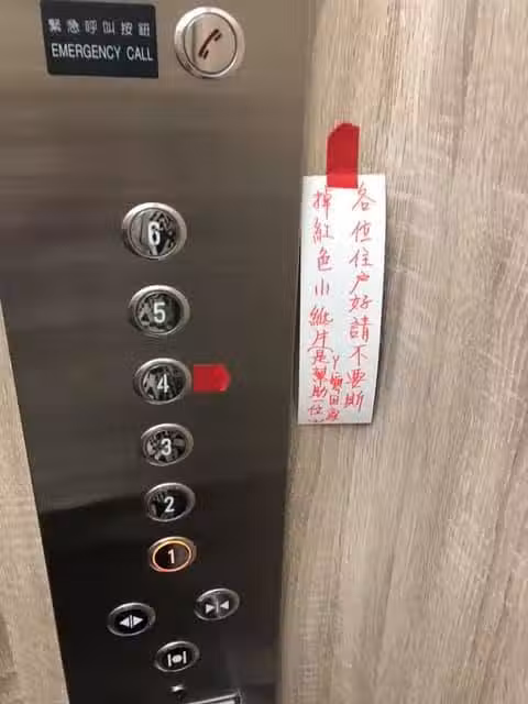 拜託不要撕掉!電梯按鈕「貼一張紅色貼紙」超醒目 看到「旁邊房東紙條內容」感動讚爆:太善良
