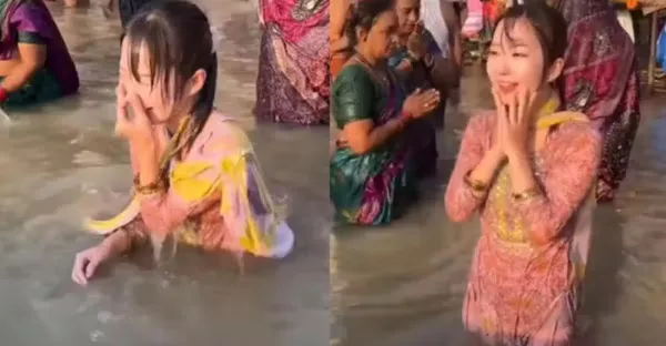 就是不信邪!網紅去印度恆河「學當地人跳進河凈身」 全身浸水洗臉「1小時後身體有異樣」在場遊客都愣了