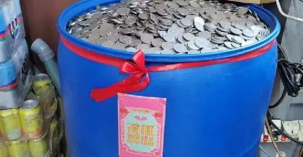 老闆娘放話「店裡零錢桶,能抱走全送你」,顧客用盡全力卻紋絲未動,網友估出總價:不要也罷!