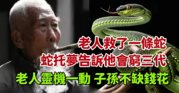 老人救了一條蛇,蛇託夢告訴他會窮三代,老人靈機一動,子孫不缺錢花!
