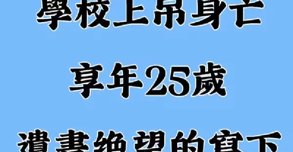 男大生「學校上D身亡」享年25歲,遺書絕望寫下:「不缺我這個廢物...」