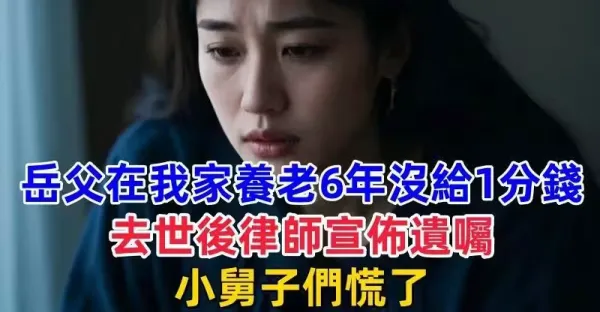 岳父在我家養老6年沒給1分錢,去世後律師宣布遺囑,小舅子們慌了