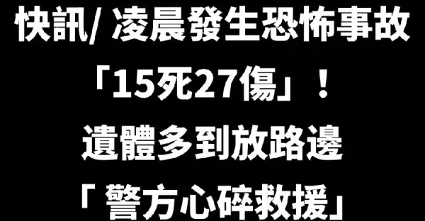 快訊/凌晨發生恐怖事故「15死27傷」!遺體多到放路邊 「 警方心碎救援」!