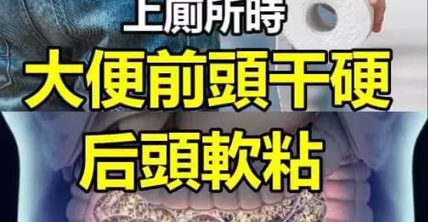 上廁所時,大便前頭干硬,後頭軟粘,說明了什麼?看完後漲知識了~