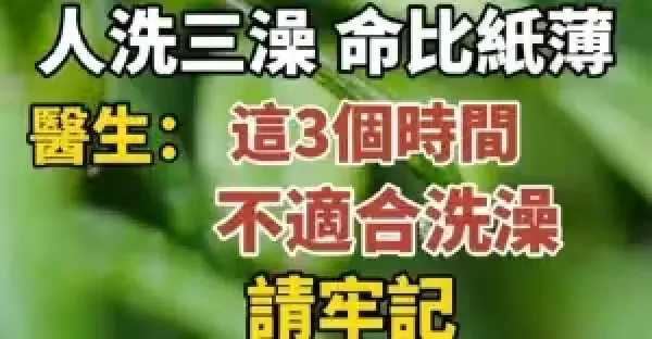 人洗三澡,命比紙薄!醫生:三個時間點不適合洗澡,請牢記