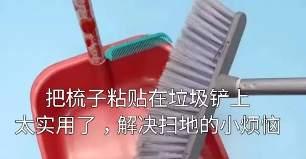 把梳子粘貼在垃圾鏟上,太實用了,解決掃地的小煩惱,太棒了