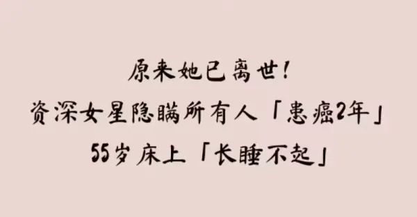 原來她已離世!欺騙所有人患癌2年, 55歲床上「長睡不起」