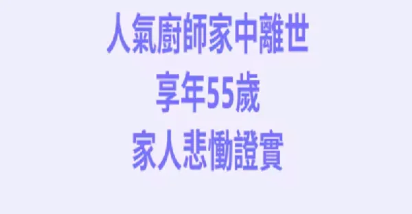 快訊/人氣廚師「家中離世」 享年55歲