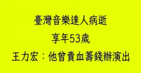台灣音樂達人病逝,享年53歲,王力宏:他曾賣血籌錢辦演出