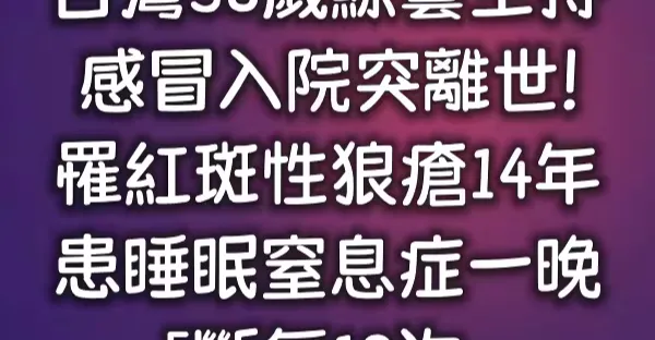 台灣38歲綜藝主持,感冒入院突離世!罹紅斑性狼瘡14年 患睡眠窒息症一晚「斷氣19次.」
