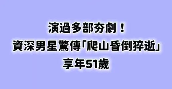 演過多部夯劇!資深男星驚傳「爬山昏倒猝逝」享年51歲