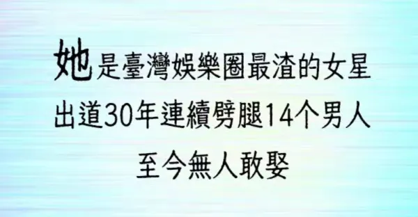 她是台灣娛樂圈最渣的女星,出道30年連續劈腿14個男人,至今無人敢娶